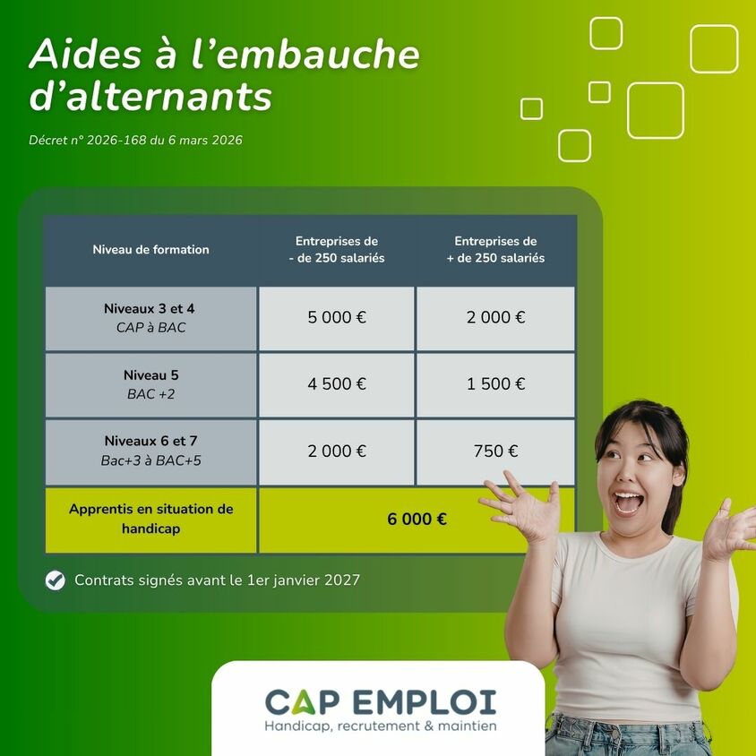 Suite au décret n° 2026-168 du 6 mars 2026 relatif à l’aide exceptionnelle aux employeurs d’apprentis, l'aide destinée aux employeurs embauchant des apprentis, notamment des apprentis en situation de handicap est reconduite. Voici en détail pour ce qui change.